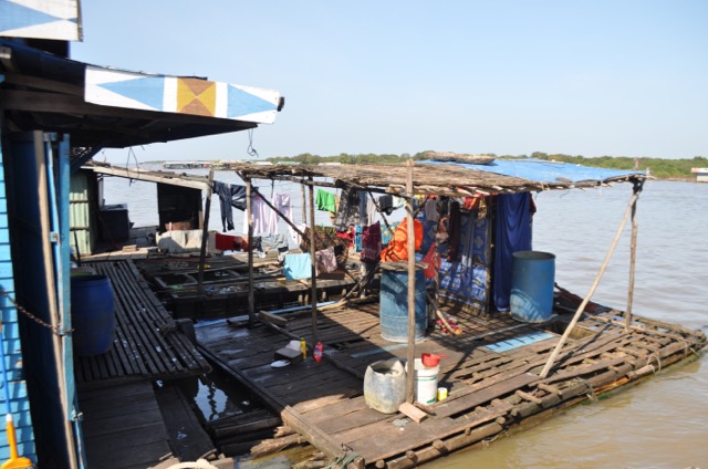 Nous allons ensuite visiter le lac de Tonle Sap qui est le plus grand du pays et dont la particularité est que son flux s’inverse pendant la saison des pluies. Il est aussi réputé pour son village flottant car ils ont leur propre église et terrain de basket. Au centre du village se trouve une sorte de restaurant, un haut lieu de tourisme où les enfants essaient de convaincre les touristes de se faire prendre en photo avec eux et leurs serpents.