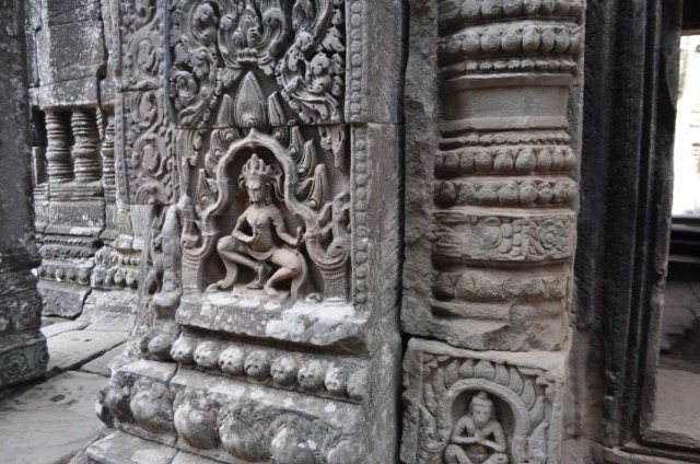 Nous étions supposés voir un autre temple mais Savvy nous dit qu’il n’est pas extraordinaire et nous recommande de revenir dans celui que nous avons préféré, particulièrement pour moi qui était dans les vapes le premier jour. Très bon conseil et c’est sans hésitation que nous retournons au Bayon, le temple aux 216 sourires de Bouda, que nous avions visité en premier. Choix opportun car c’est l’heure du déjeuner, il y a moins de monde et je me sens beaucoup mieux ; du coup les photos sont un peu mieux prises.