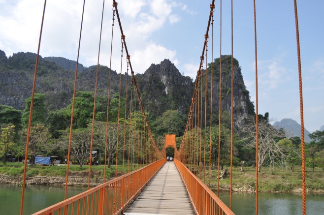My travelling companion had asked to go to Vang Vieng after seeing some stunning pictures from one of my photography books, as well as being intrigued by its unusual story. Vang Viang used to be a quiet village until a decade ago when it was ‘discovered’ (read ‘presented to the western world’) by the travel guide Lonely Planet because of its outstanding natural beauty. It soon became popular to people wishing to get off the main road, which also opened the route to a completely different type of traveller. The other thing about Vang Vieng is that it lieswithin the ‘golden triangle’ where opium and marijuana flow cheap and abundant. After the village had been turned into a tourist center, the river soon became a giant rave party, flooded with thrill-hungry 20-somethings. The site was so spoiled that we saw some signs requiring tourists not to wander the streets in bikinis – Laotians are particularly modest.