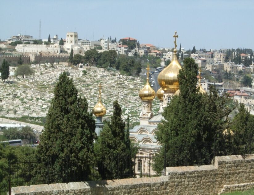 Nous avons vu se détacher la ville, surtout la grande mosquée d’un bleu qui se détachait du ciel. Afin de mieux apprécier la vue, nous avons fait étape sur le Mont des Oliviers qui résonnait des chants de prière émanant des minarets. Nous fûmes aussitôt plongés dans la ferveur religieuse qui donne une ampleur très particulières à la ville. Il y avait des oliviers partout, certains plus que centenaires.