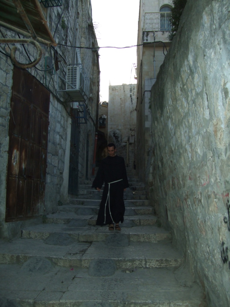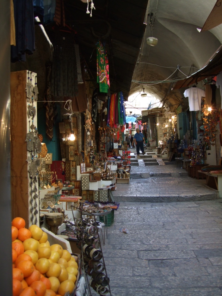 La ville est absolument magnifique : tout est bâti dans la même pierre blanche, y compris les rues pavées et étroites. Le quartier musulman est très vivant avec ses souks et ses boutiques kebabs ; nous avons d’ailleurs très bien mangé dans une salle voûtée et fraîche. Le quartier juif est plus calme, avec ses passants habillés à leur mode très particulière : de grands chapeaux et des roufflaquettes pour les hommes et des tenues noires et chastes pour les femmes ; ce qui ne leur empêchait pas d’être variées. J’ai trouvé cela intéressant à observer.