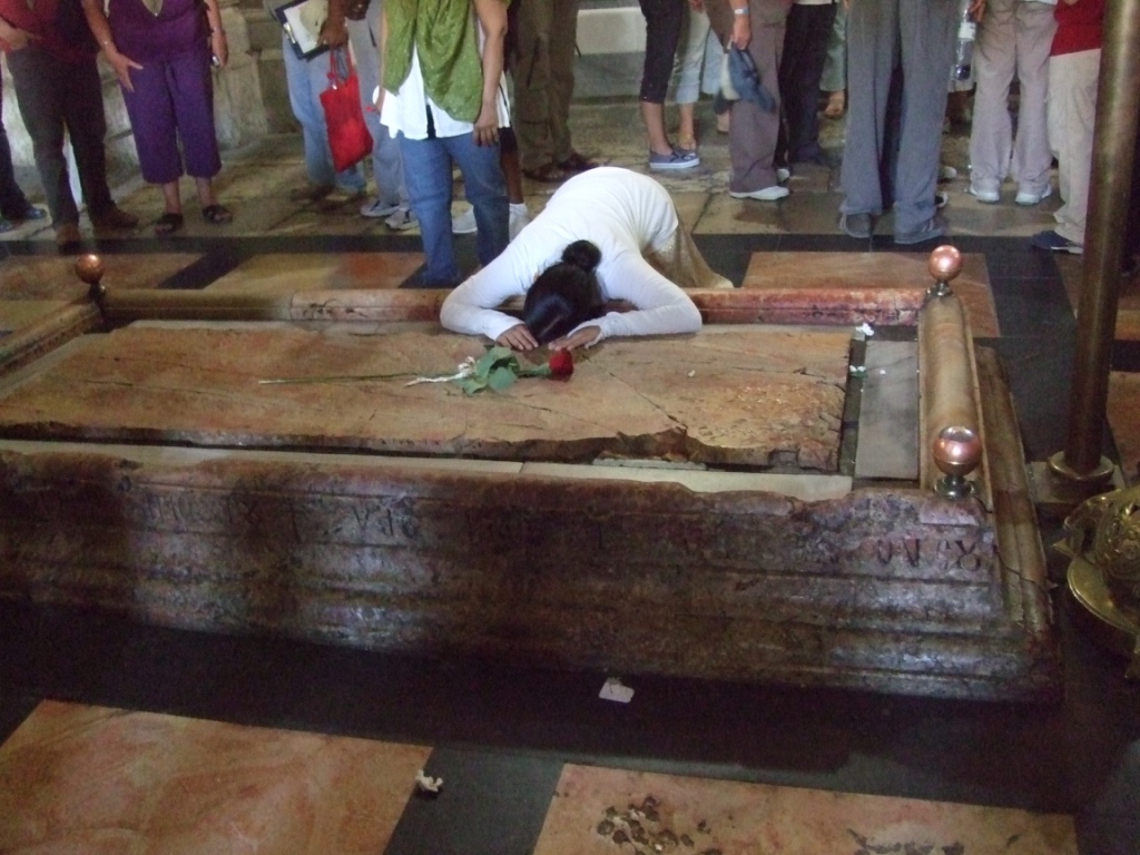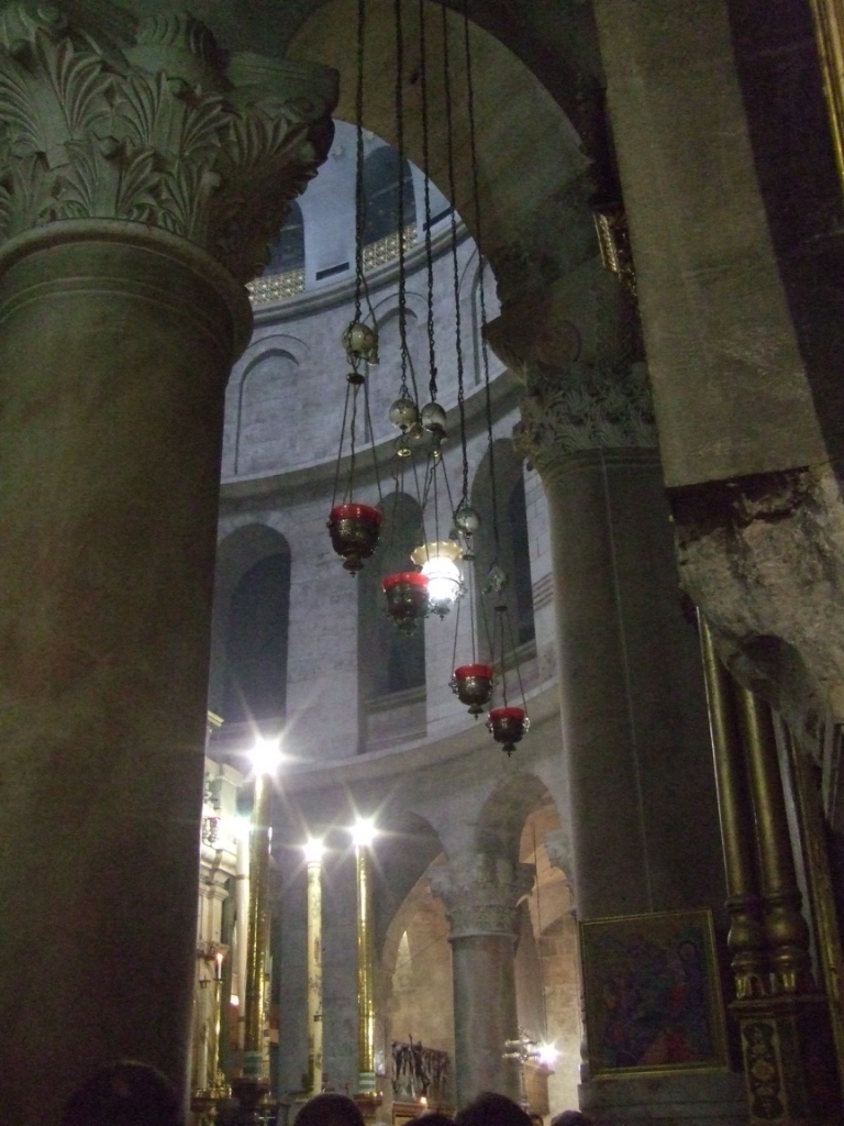 Devant le mur des lamentations, des gens se recueillaient profondément, parfois à la limite des pleurs, pendant que d’autres glissaient de petits bouts de papiers pliés dans les aspérités du mur pour que leurs voeux se réalisent. Notre guide nous lisait des passages de la Bible tout au long de notre visite, si bien que nous avions l’impression de revivre cette grande épopée. Se trouver dans les pas du Christ, dont à mes yeux l’existence n’est pas certaine, ou du moins pas dans la version qui est généralement admise, donnait à ce mythe une dimension réelle véritablement poignante. Surtout sur le chemin de la passion ou l’église ou il a été crucifié.