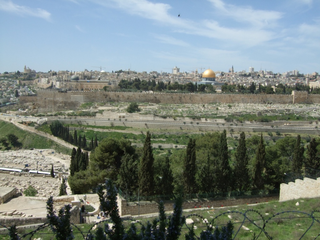 Nous avons vu se détacher la ville, surtout la grande mosquée d’un bleu qui se détachait du ciel. Afin de mieux apprécier la vue, nous avons fait étape sur le Mont des Oliviers qui résonnait des chants de prière émanant des minarets. Nous fûmes aussitôt plongés dans la ferveur religieuse qui donne une ampleur très particulières à la ville. Il y avait des oliviers partout, certains plus que centenaires.