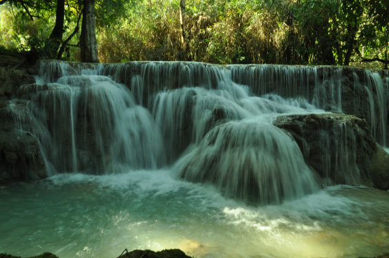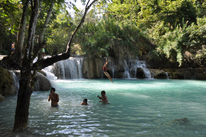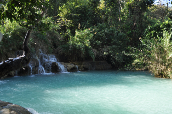 Even though I am usually a big waterfall fan, I had not felt particularly excited at the prospect of having to drive an hour or so to visit one. Big mistake: Khuang Si waterfall is like no other: its unique shade of turquoise blue, similar to a swimming pool, is as enchanting as it is natural. Water travels through mountains made up of a particular type of limestone which give it this colour.