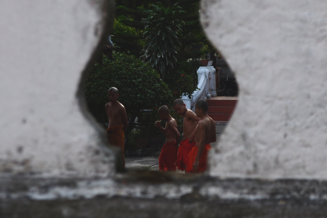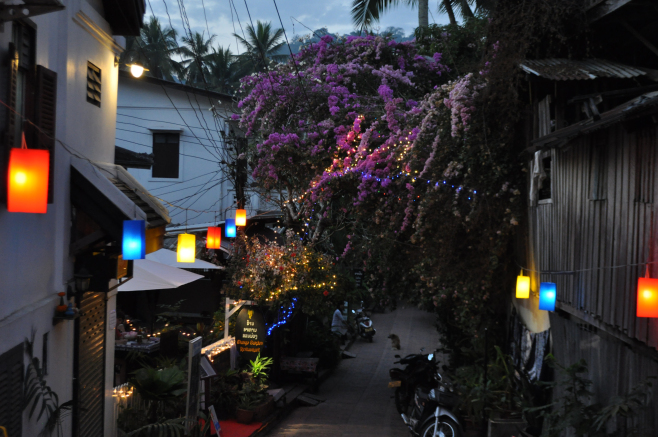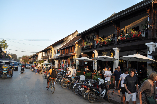 After three days in the heat and crowds of the Angkor temples I was looking forward to cool down. Laos sounded just like the perfect place; its official name is LPDR, which locals enjoyed translating into « Lao People Don’t Rush« . Indeed landing in Luang Prabang after dark was quite unreal as I could not see any lights on the ground and felt like we were about to land directly into the forest. I knew Laos to be mountainous with low density yet this apparent lack of habitations took me by surprise. The other shock was climatic with a 20-celsius-degree loss; from 34 in Siem Reap down to 14. I was freezing.