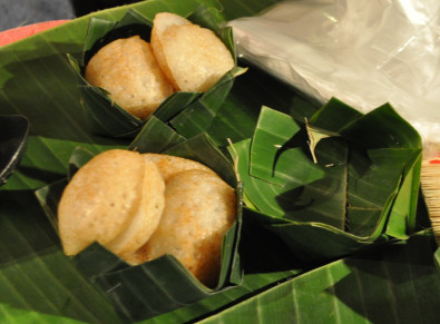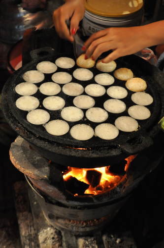 I got to taste a culinary specialty: ball-like pancakes made of rice soaked in coconut and sugar then cooked on a roundbarbecue. Served in a banana leaf, these sort of pancakes are soft on the inside, crunchy on the outside, they taste sweet without being sickening and offer a delicate perfume.