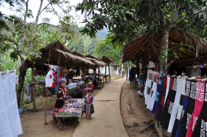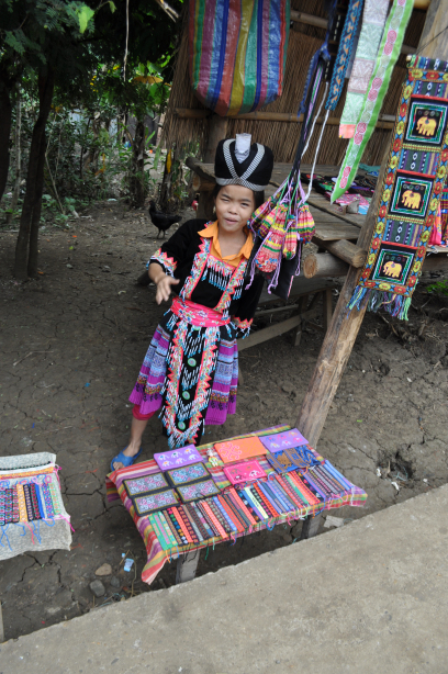 A typical small lao village in which farming life was very much present. Simple and bare – apart from the main street that hadbeen turned into an open-air supermarket for souvenirs of all kinds. Tourism had become the main activity: children were wearing traditional clothes. M. Tin explained that these attires were slowing disappearing because the population wasbecoming more occidental. On one hand he felt a bit sad to witness each village’s own identity disappearing but at the same time modernization implied improving living conditions for the locals.