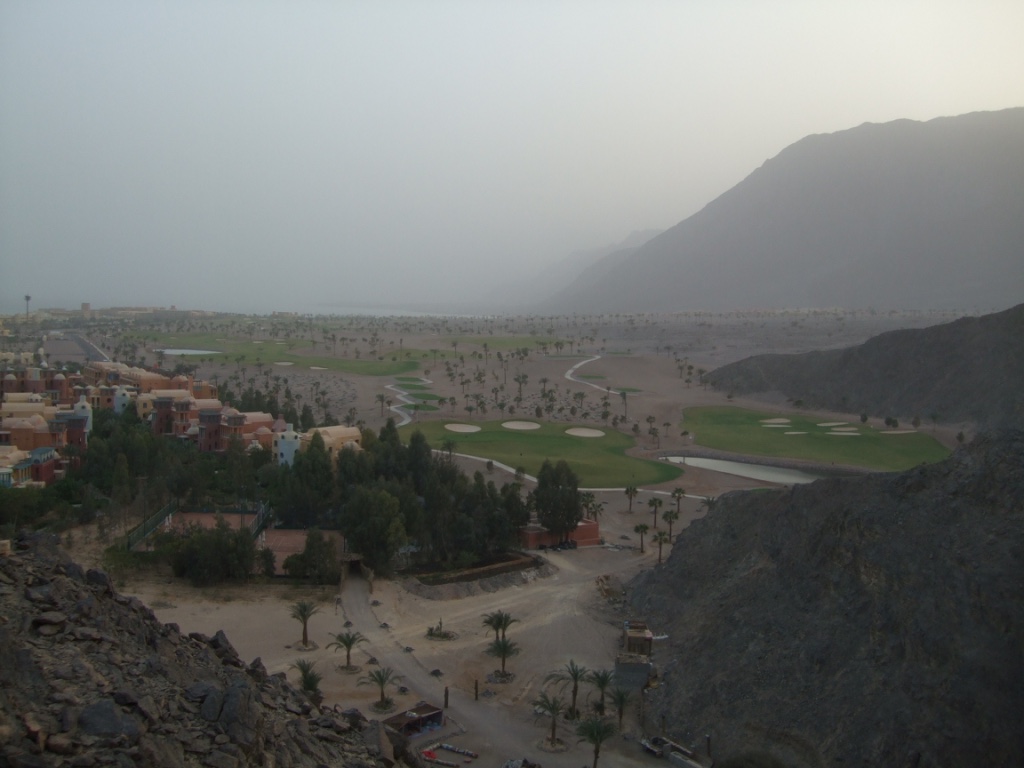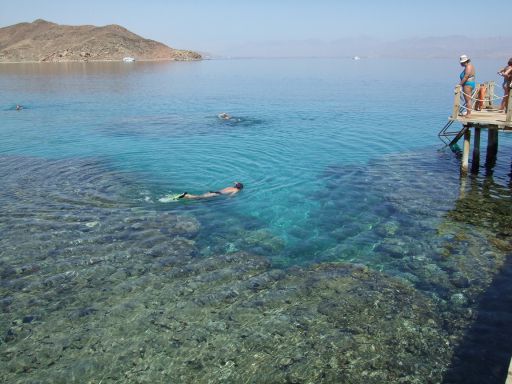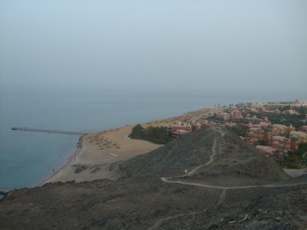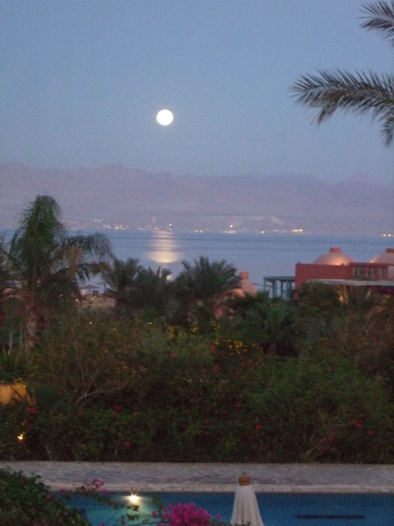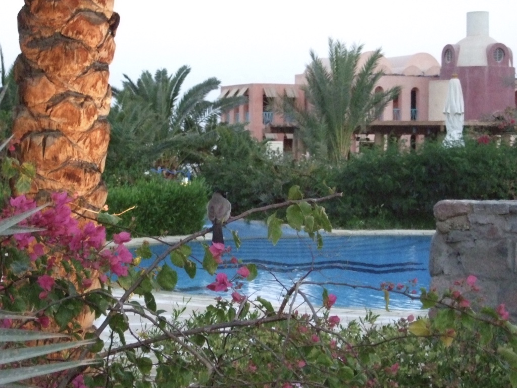 C’est après avoir longé une profonde aridité que le paysage s’est ouvert sur cette vision étrange qu’offrent les palaces hôteliers de Taba Heights. L’hôtel où je dors est magnifique, immense : on se croirait vraiment dans le palais de SheRahazade : du marbre partout, là encore, de très grandes piscines – superbement conçues. Les jardins constituent une véritables prouesse, autant par leur somptuosité que par la présence du désert juste à côté. Il y fourmille un nombre impressionnant d’employés, majoritairement de jeunes égyptiens mâles, tous très souriants et agréables, avec un anglais assez compréhensible.