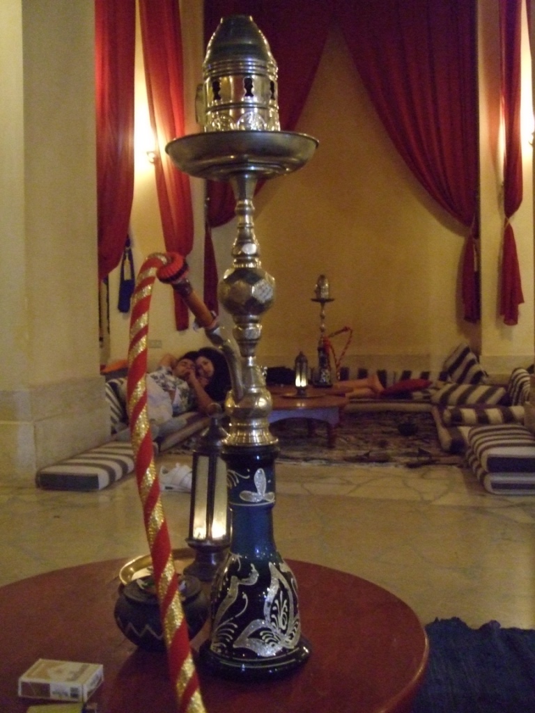 C’est affalée sur les coussins du salon à shisha de « mon » palace que je vous écris, au rythme du tam tam et d’une cithare. Je me plais énormément ici. Il fait très beau avec des températures aux alentours de 28 degrés, adoucies par une brise constante de la mer.