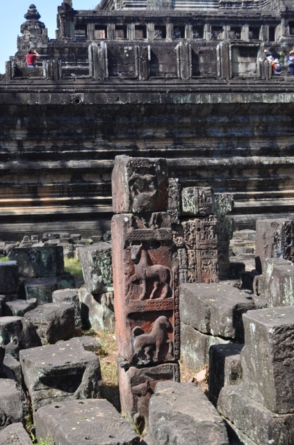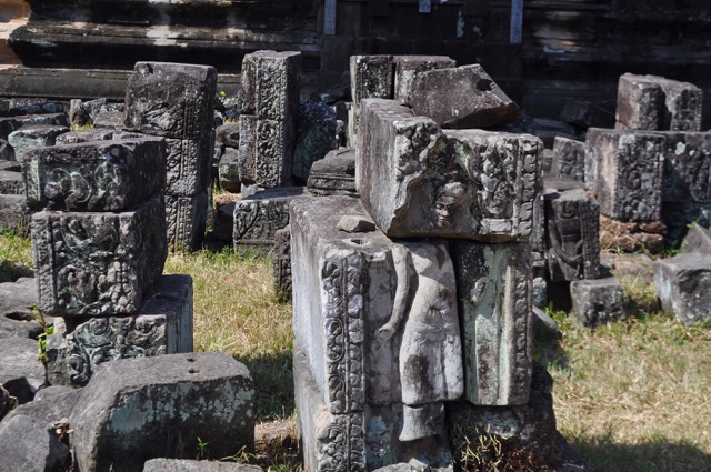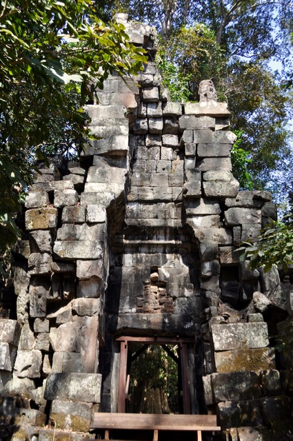 En chemin vers la terrasse du roi lépreux, nous traversons les vestiges de la chambre du roi; Savy me dit de ne pas m’inquiéter, que c’est sécurisé de passer sous ce douteux amas de pierres – n’empêche j’avance vite.