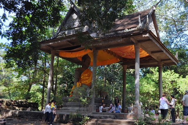 Et, à la sortie, une autre surprise de taille: un Bouda allongé (une des sept figures sacrées , tellement grand (il fait toute la largeur du bâtiment) qu’il faut un petit moment pour le repérer: