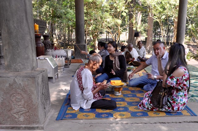 Les yeux déjà bien remplis, nous nous baladons dans les vestiges de l’ancienne capitale et c’est incroyable la concentration de temples… Ici, une “récente” (16eme siècle) statue de Bouda avec a ses pieds un prêtre qui lit l’avenir.