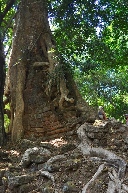 Il est alors 13h, la chaleur est écrasante alors nous partons manger. L’après midi, nous découvrons le temple de la jungle ou a été tourne le film tumb rider avec Angelina Jolie. C’est juste magnifique, et là, encore une autre dimension a la beauté architecturale, grâce à l’enchevêtrement de pierres et d’arbres gigantesques et magnifiques.